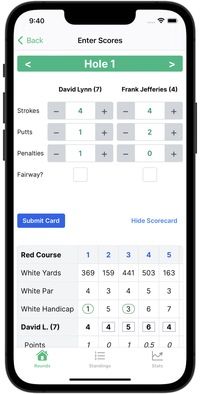 Give us your tee times and golfers, we'll do the rest. Your full season schedule planned out for as many weeks as you want. Don't use a schedule? No problem. You can take it round-by-round too.